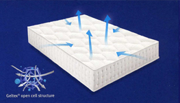 The Geltex comfort layer is an innovative combination of an extremely elastic gel and air-permeable foam offering a unique combination of unparalleled breathability to prevent the body from overheating, perfect pressure relief preventing pressure points from building and optimal body support providing perfect spinal alignment and support throughout the night.